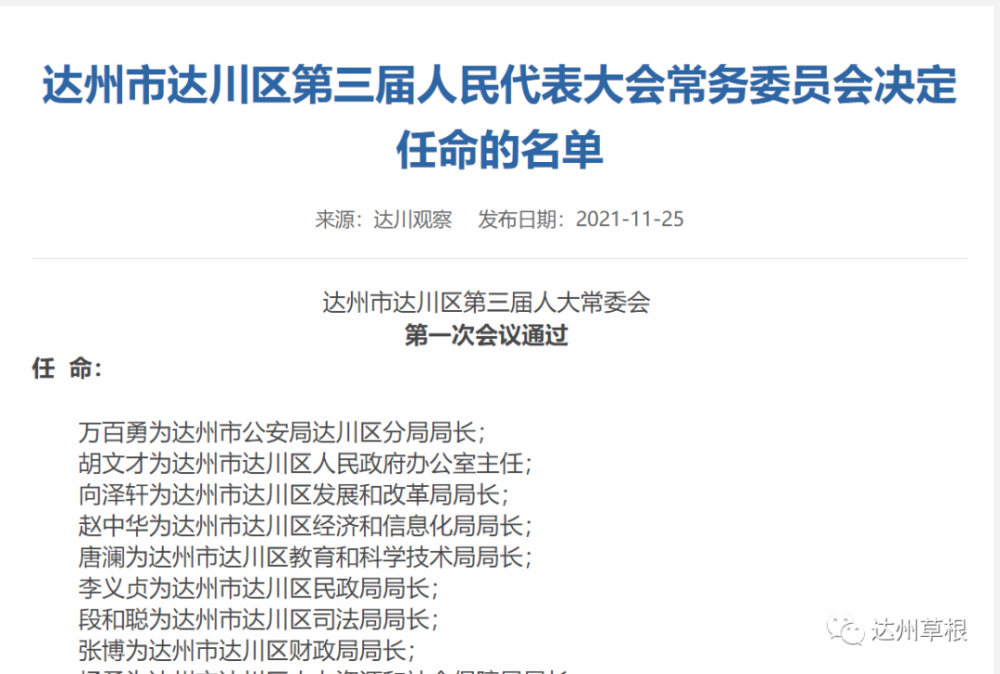 达川区委发布最新人事任免指南,涉及重要职务的人事变动。该指南详细列出了新任命的领导名单、职务及职责等信息,为公众提供了清晰的了解。此次人事调整旨在优化组织结构,提高行政效率,推动地区发展。新任命的领导将肩负起重要使命,为达川区的发展作出积极贡献。具体名单和职务安排可通过官方渠道获取。